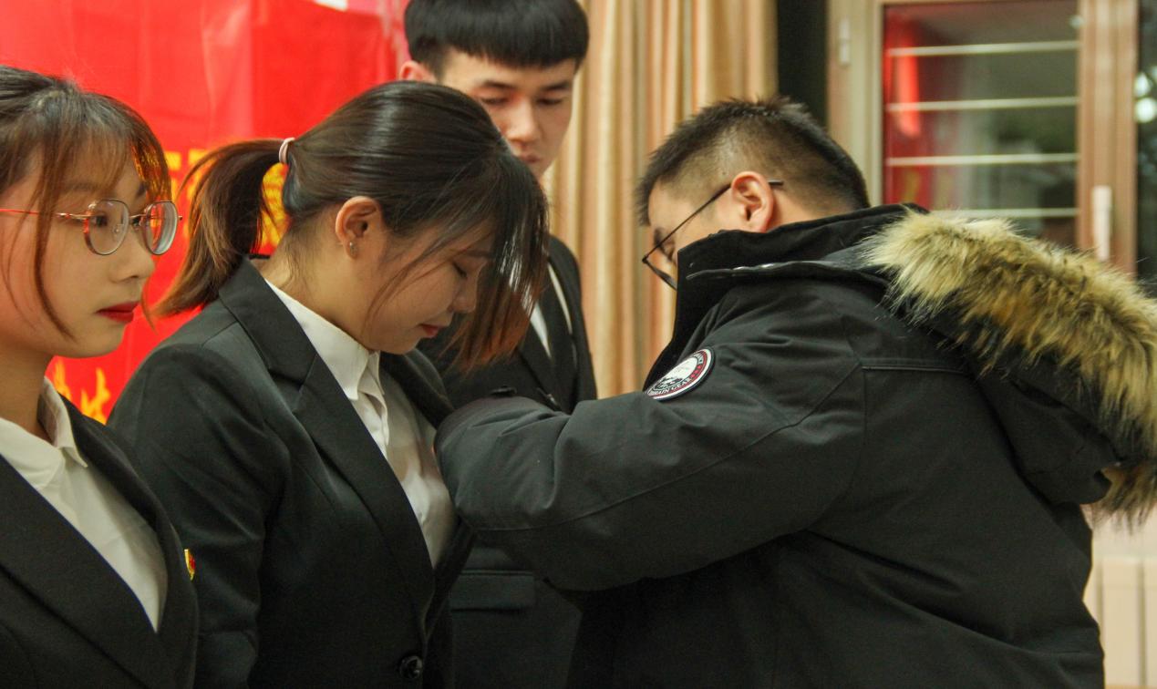 db真人体育官网员工第三党支部书记古琛同志为新发展党员佩戴党徽