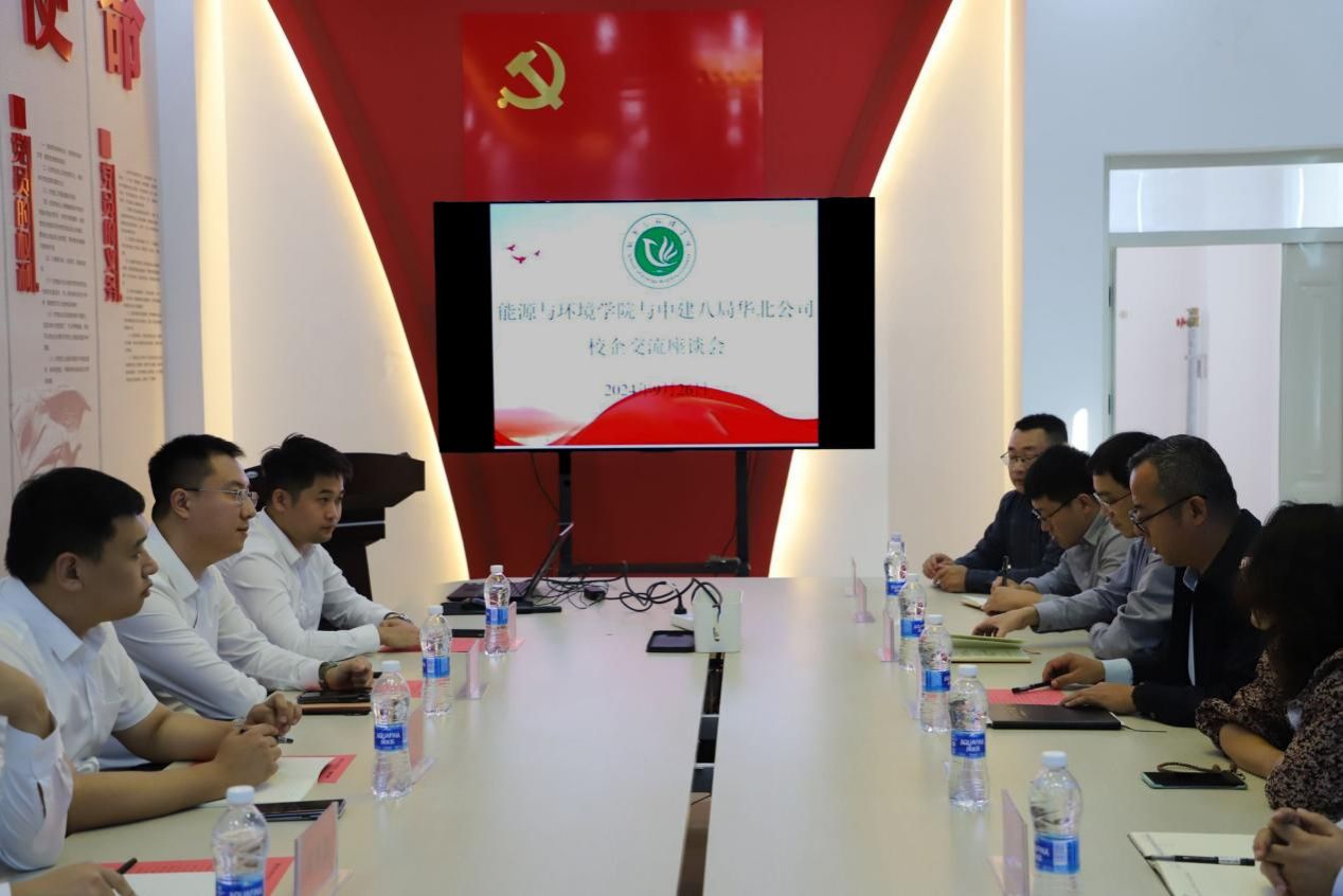 为进一步推进公司与员工的联系,搭建企业与毕业生之间的桥梁,扩宽毕业生就业渠道与资源,开拓校企合作领域,2024年9月26日下午,db真人体育官网与中建八局华北公司在公司秋实北楼419会议室开展校企交流座谈会。中建八局华北公司数据中心项管部胡峰经理、市场营销陈清磊经理、市场营销杜枫经理、综合办公室 (人力)业务经理王义超,能源与环境公司党委书记唐俊、党委副书记兼副经理柴艳莎、副经理吴晅、副经理张智羽、学工办主任刘芳以及部分教师参加交流座谈。