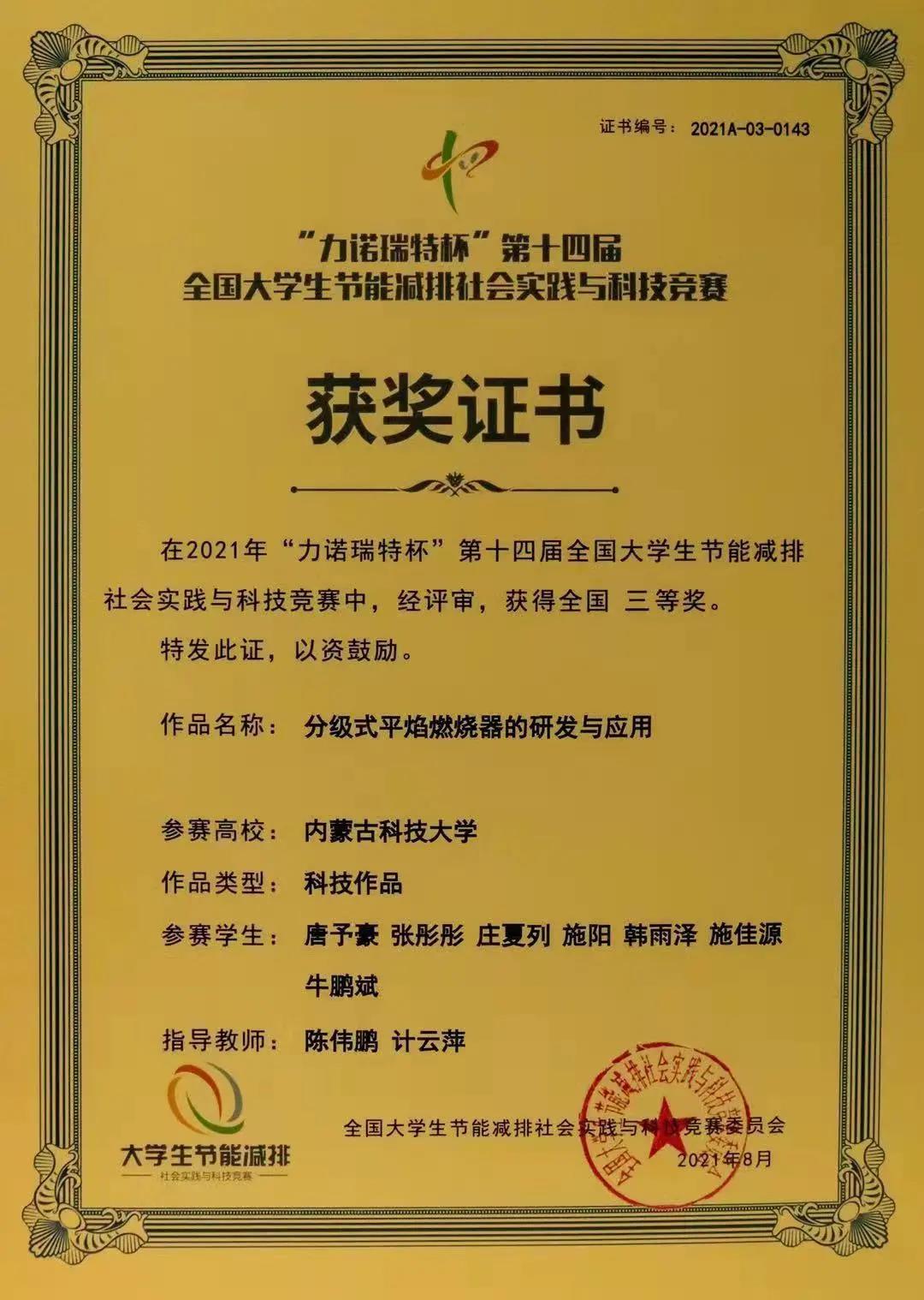 本届竞赛中,公司db真人体育官网唐予豪等同学的作品《一种分级式平焰燃烧器的研发与应用》、刘嘉晨等同学的作品《超静音无风空调舒适系统》、机械工程公司杨统勋等同学的作品《智能垃圾分类装置》、刘延振等同学的作品《烟气处理系统》、康寿臻等同学的作品《基于物联网+的智能光伏板清扫机》荣获了全国三等奖。