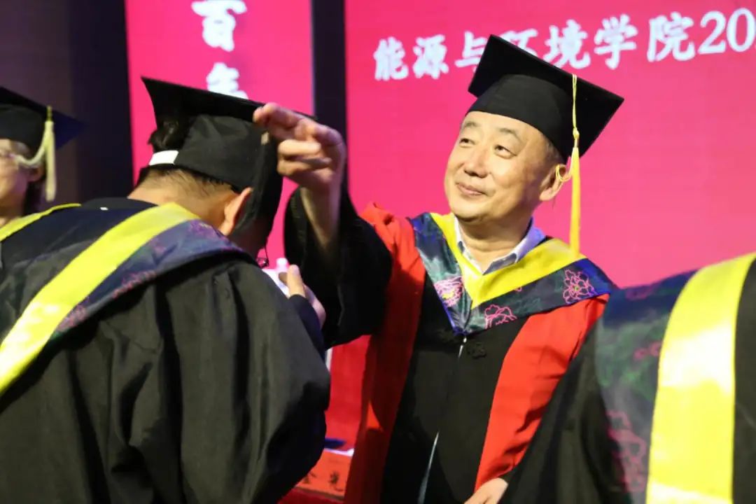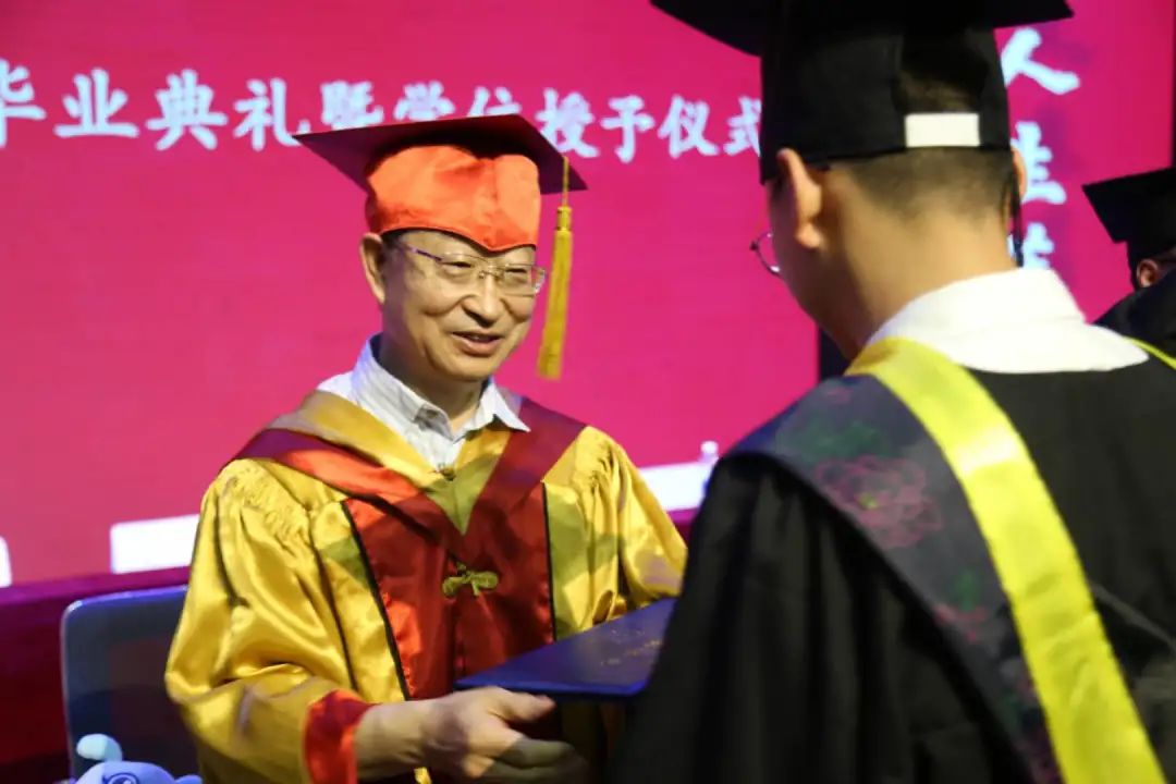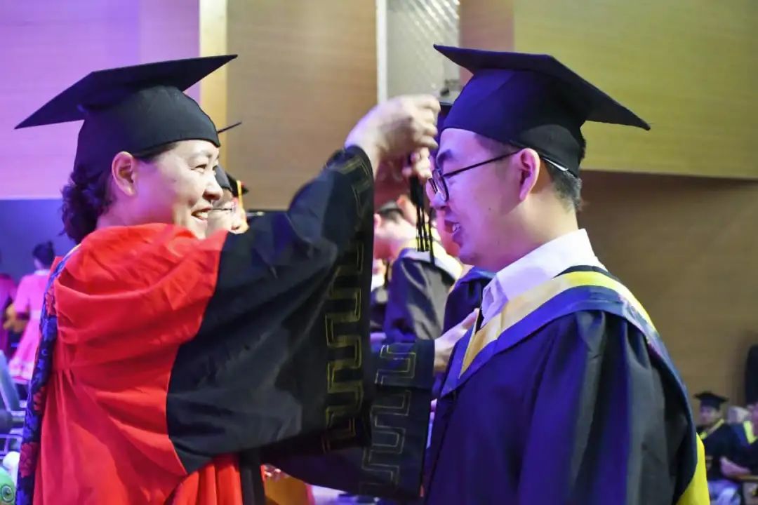 在主席台就坐的领导嘉宾为公司全体硕士、本科毕业生拨苏正冠并颁发学位证书。