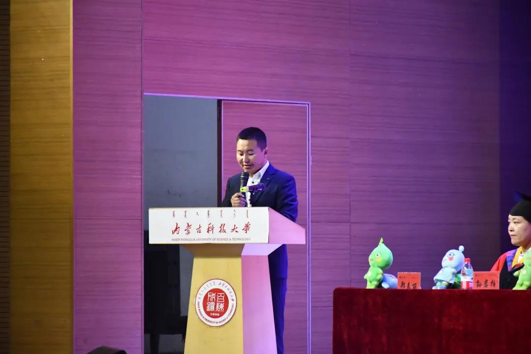 员工家长代表,2021届本科毕业生郭莹的父亲郭俊希表达了对公司老师们的深深感恩和对毕业生们浓浓的祝福,希望他们可以在今后的道路上不负父母家长和老师朋友的众望,蓄力前行。