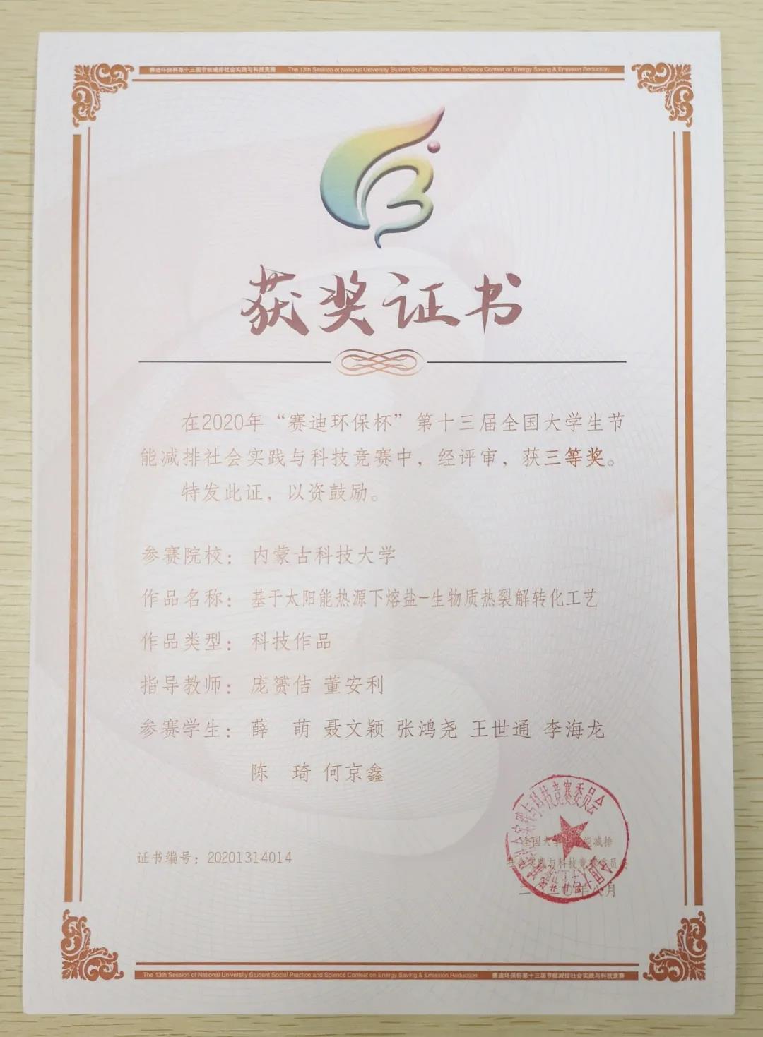 近日,由教育部高等教育司主办、重庆大学承办的“赛迪环保杯”第十三届全国老员工节能减排社会实践与科技竞赛圆满落幕。在本次大赛上,公司员工表现优异,共有6支团队荣获三等奖,其中db真人体育官网4项作品,土木工程公司1项作品,信息工程公司1项作品,获奖作品数量创公司在此项赛事的历届之最。