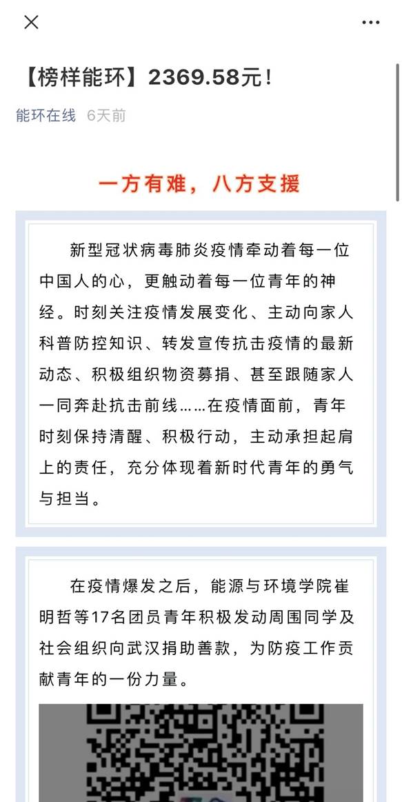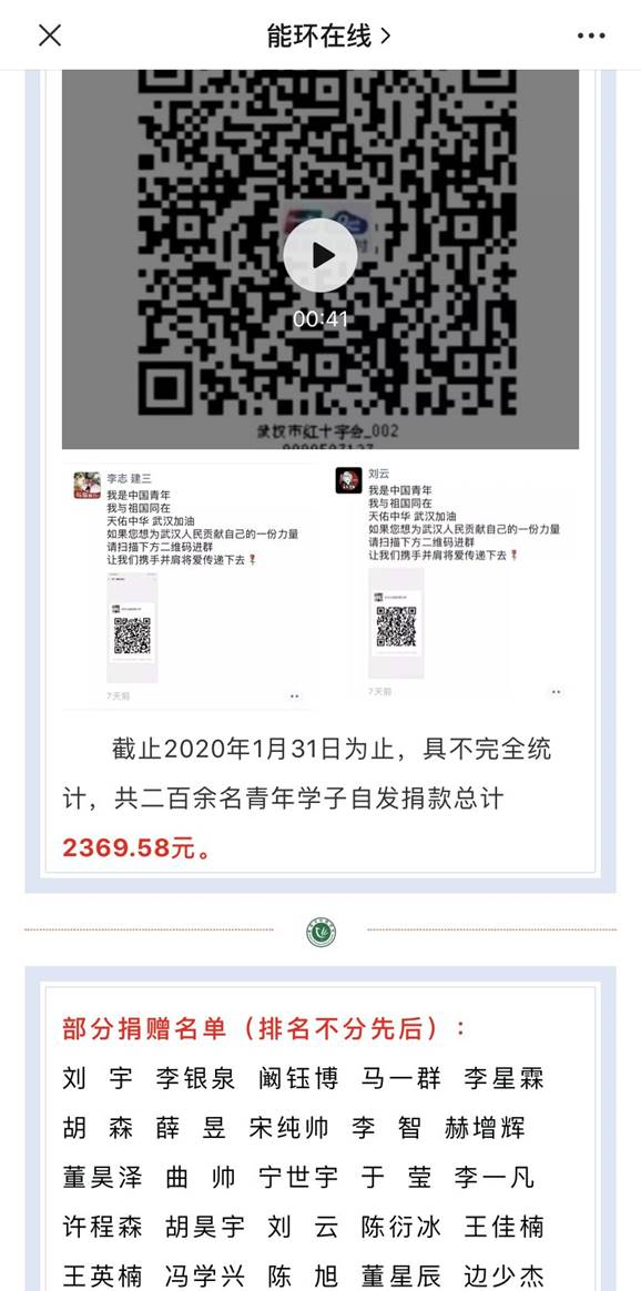 “有一份热,发一份光。” 疫情暴发之后,在db真人体育官网建环18-3班崔明哲等人的倡议下,公司二百余名团员青年向武汉捐助了二千多元善款,为防疫工作贡献青年的一份力量。他们给自己取名叫“中国青年”。