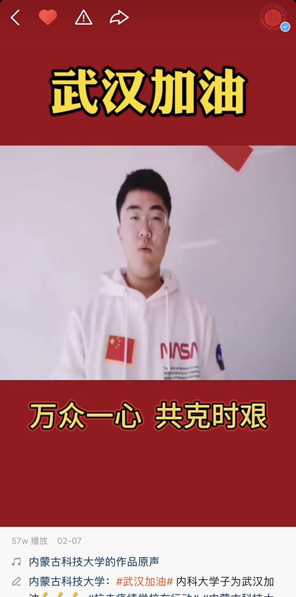 为了更好地凝聚青春力量,为抗击疫情加油鼓劲,公司倡议青年学子在家中用手语共同演绎暖心歌曲《让世界充满爱》。倡议一发出就引来诸多青年学子的热心参与,他们用手语“唱”响信念之歌,致敬战斗在抗“疫”一线的工作人员们,为武汉加油、为湖北加油、为中国加油!该视频在公司快手官方平台一经播出便受到了各界的关注和热议,播放量达57万人次,营造了传播青春正能量、众志成城共抗“疫”的浓厚氛围。