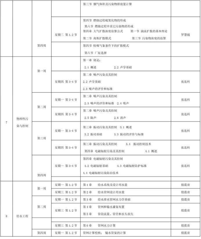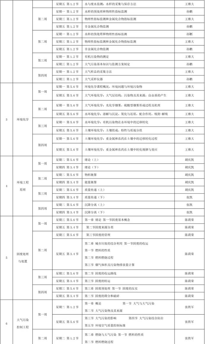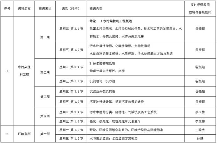 环境工程专业理论教学课程线上教学工作计划如下表所示。