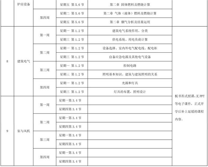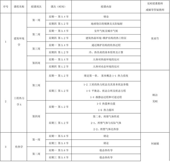 建筑环境与能源应用工程专业理论教学课程线上教学工作计划如下表所示。