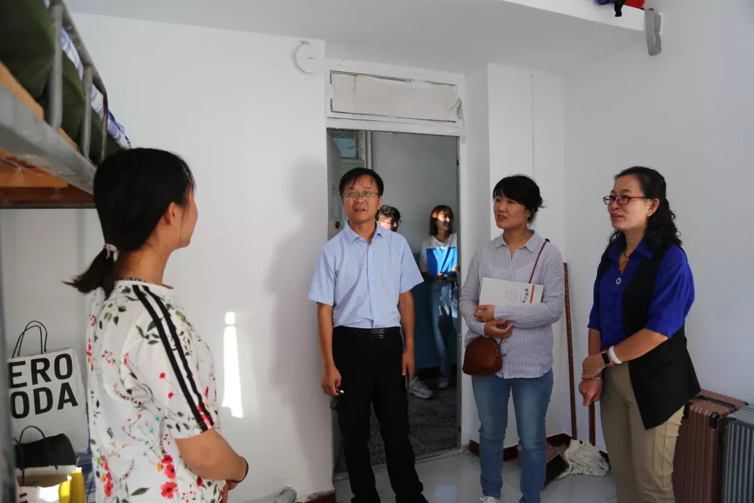8月29日,公司党总支书记李卫平、党总支副书记、副经理孙岩柏带领公司辅导员、新生班主任来到新生宿舍,与同学们亲切交谈,向同学们传达公司的热情问候与殷切期望。