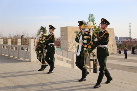 活动伊始,全体奏唱《中华人民共和国国歌》。高昂的歌声,唱出了革命先烈们为了民族的解放和人民的幸福在枪林弹雨中浴血奋战的壮丽篇章。随后,同学们在工作人员的带领下倾听了包头烈士陵园介绍。同时四名国旗护卫队队员为烈士们敬献花篮。朵朵鲜花寄托着我们的哀思,代表着我们对革命先烈的敬仰。