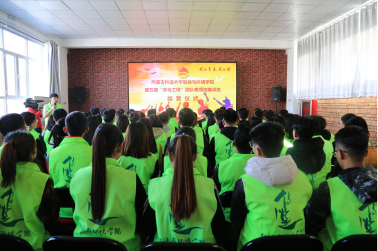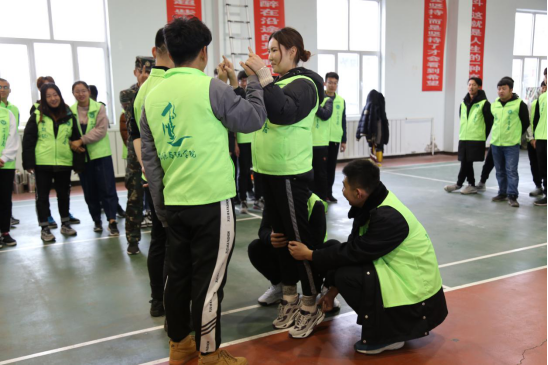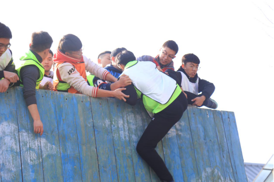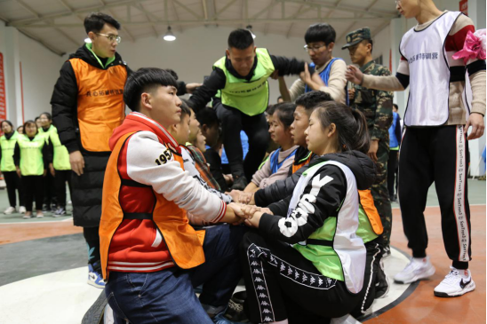 开营仪式之后便开始了团队素质拓展内容。教练通过简单的互动拉近了同学们彼之间的距离,全体学员被随机分成四支队伍开始团建活动,在设计队名、队歌、口号和队旗中,每个团队都凝练出了特色鲜明的团队精神和文化。而在两天一夜的素质拓展内容中设置了“穿越电网”、“杯水传情”、“领袖风采”、“抢渡金沙江”、“信念墙”等有趣且有意义的训练项目。在项目进行中,每个学员都以饱满的热情、活跃的姿态,积极投入到极富挑战性的拓展项目中,展现出了良好的精神风貌和团队合作精神。
