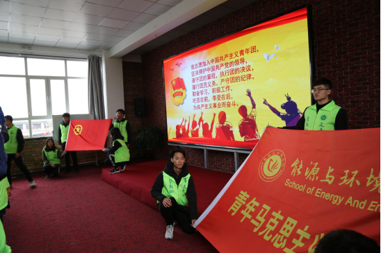 到达基地之后,首先进行了团队素质拓展训练开营仪式。开营仪式上,全体学员右拳高举,面对团旗庄严宣誓:我志愿加入中国共产主义青年团,坚决拥护中国共产党的领导,遵守团的章程,执行团的决议,履行团员义务,严守团的纪律,勤奋学习,积极工作,吃苦在前,享受在后,为共产主义事业而奋斗!声音环绕会场上空,催人奋进,激发斗志,给人力量!