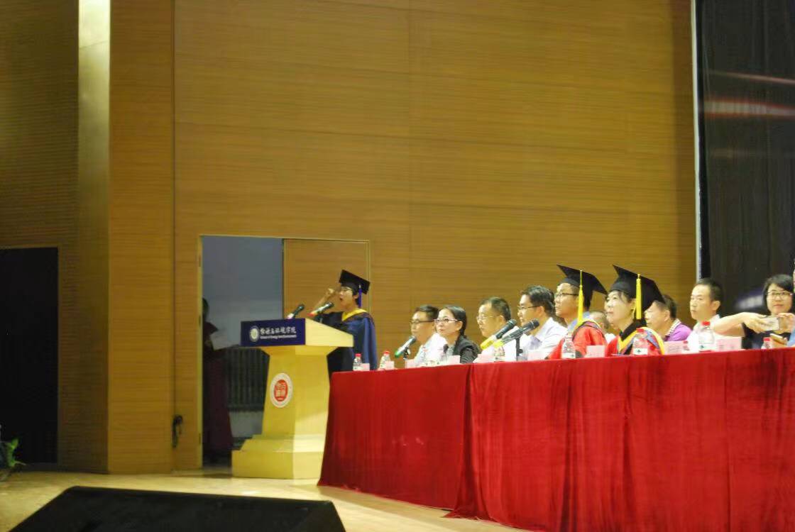 典礼由一首毕业歌曲《光阴的故事》拉开帷幕。紧接着经理金光教授及优秀员工代表杨炳武董事长向同学们送上了毕业寄语。同时,金光经理、李卫平教授宣读了硕士学位及学士学位决议、并由公司导师为毕业生拨流苏、颁发学位证书。还由校领导为获得“春晖奖”及“校园文化建设特别贡献奖”的同学颁奖。教师代表肖作义教授、左帅、王晓云员工代表分别发表讲话。最后公司向全体毕业生发放了“毕业饺子劵”一份来自母校的礼物,典礼就此结束。