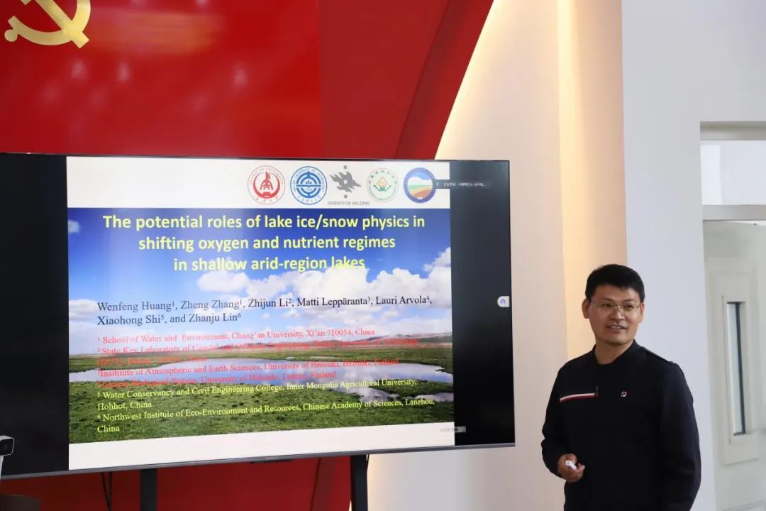王志超副教授以线上交流的方式就DB视讯黄河流域寒旱区水土环境研究中心的人员组成、研究方向、研究成果等方面做了细致的介绍,也希望同蒙方达成合作意向;李志军教授进行了中德项目(IceTMP)冰下湖泊冰物理和水生态系统的介绍;杨文焕教授介绍了三水统筹下黄河流域内蒙古段脆弱湖泊的保护与挑战;黄文峰教授作《湖泊冰雪物理在浅层干旱区湖泊营养变化中的潜在作用》的报告。