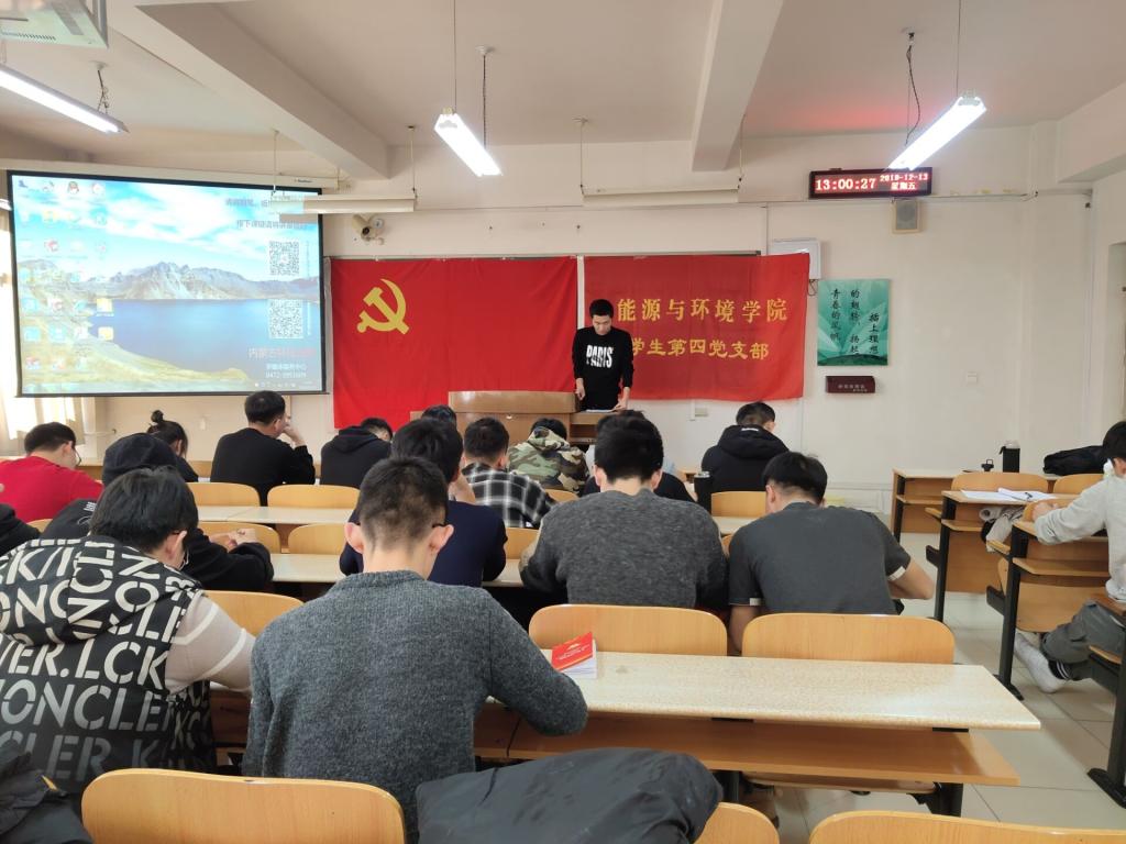 12月13日,在第一教学楼F202,由db真人体育官网员工第四党支部党员高寅东、丁辉为支部全体积极分子解读分享《习近平关于“不忘初心,牢记使命”论述摘编》第六章内容,主题是“把政治建设摆在首位,不断增强‘四个意识’、坚定‘四个自信’、做到‘两个维护’”。