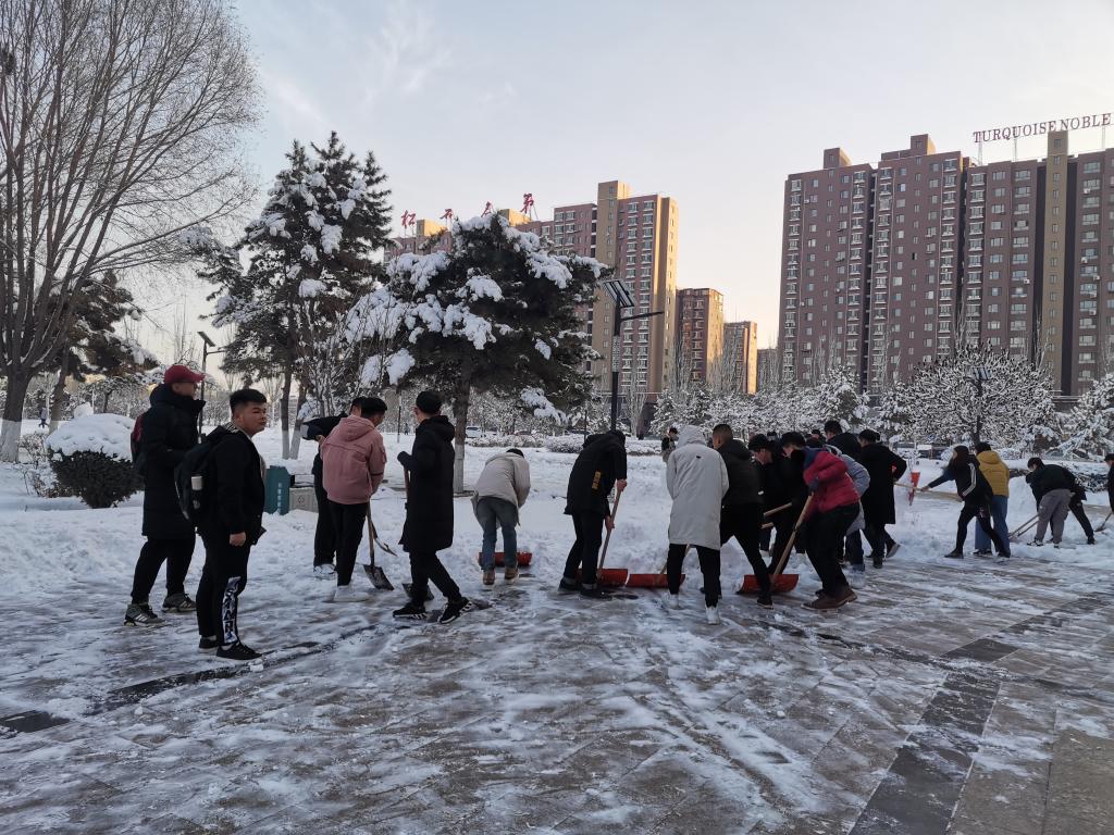经历了12月16日的那场大雪之后,给老师和同学们的出行带来了诸多不便,12月17日下午,能源与环境公司党总支组织员工党支部的积极分子对秋实楼门前的积雪进行清扫。