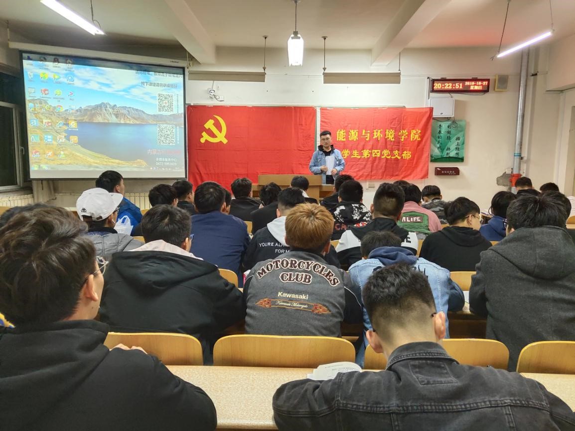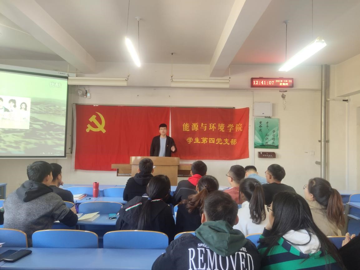10月30日由db真人体育官网员工第四党支部的党员王宙、黄杰,在第一教学楼E406,为全体党员和预备党员分享解读《习近平关于“不忘初心,牢记使命”论述摘编》的第二章内容,在此之后,大家一起观看了关于中国核武器研究发展的纪录片,从影片中可以体会到那些突破重重困难毅然决然回国,并在技术封锁的障碍下完成中国核武器的研发的科研工作者们身上所体现出的中华民族的气节。最后支部党员袁帅同志发言:不论身在何处,祖国只有一个,不能畏惧困难,也不能一味的依赖,要活出中国人的气概,知识总是有用的,要用量变产生质变。