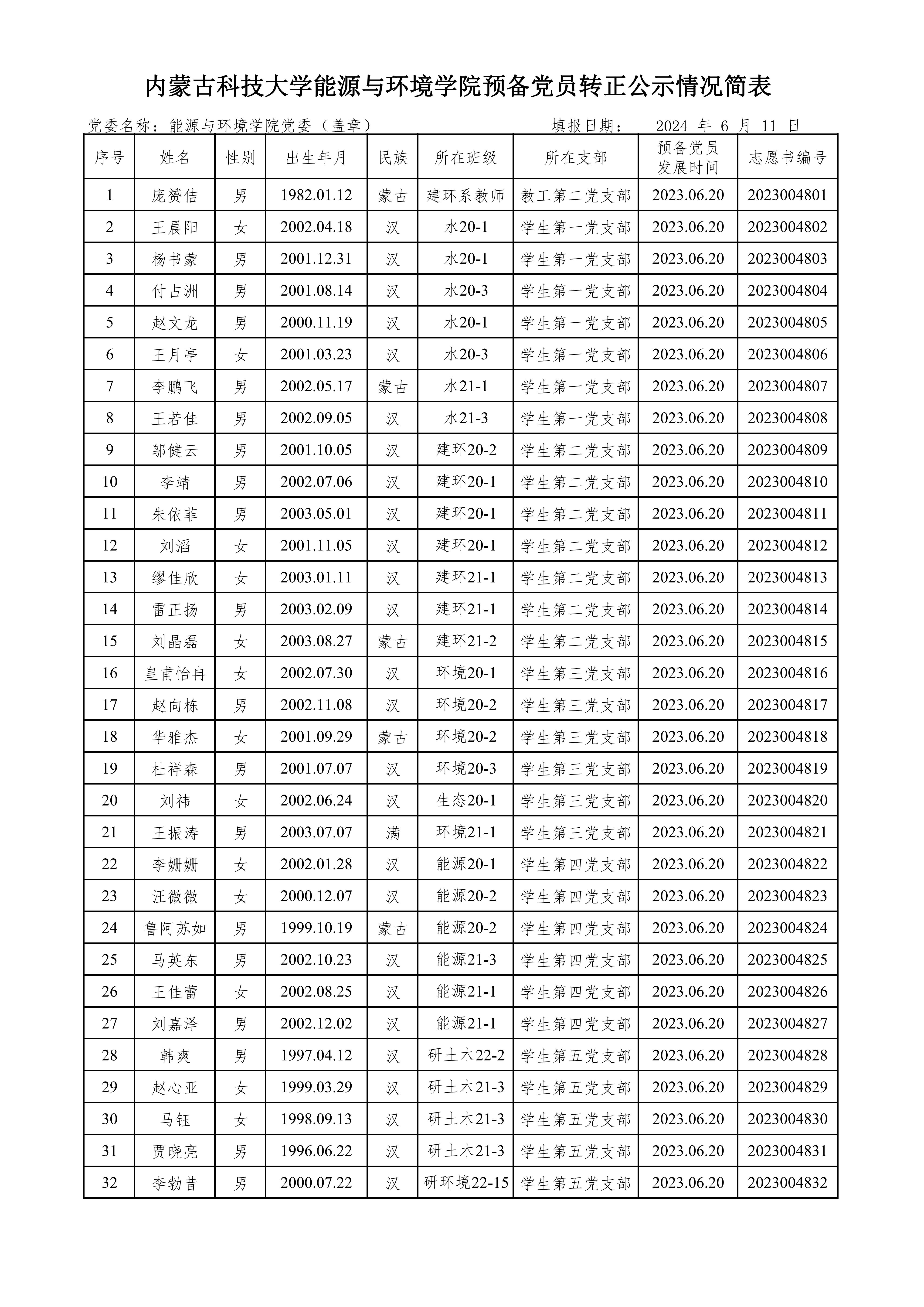 经过一年的教育和考察,庞赟佶、王晨阳、杨书蒙、付占洲、赵文龙、王月亭、李鹏飞、王若佳、邬健云、李靖、朱依菲、刘滔、缪佳欣、雷正扬、刘晶磊、皇甫怡冉、赵向栋、华雅杰、杜祥森、刘祎、王振涛、李姗姗、汪微微、鲁阿苏如、马英东、王佳蕾、刘嘉泽、韩爽、赵心亚、马钰、贾晓亮、李勃昔共三十二位同志预备期将满,公司各党支部拟在近期召开党员大会讨论他们的转正问题。为进一步增强发展党员工作的透明度,严格发展党员工作程序,根据《中国共产党章程》和《中国共产党发展党员工作细则》,现将近期拟转正的预备党员情况予以公示。