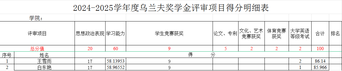 根据《DB视讯乌兰夫奖学金评选办法》(内科大发〔2023〕12号),经个人自主申报,公司奖学金评审工作小组评审,拟评选王雪雨、白东艳获得乌兰夫奖学金。