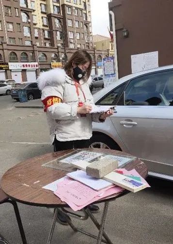 在内蒙古乌兰察布市察右中旗科布尔镇新星名苑小区负责防疫期间出入车辆与人员登记及体温测量工作。