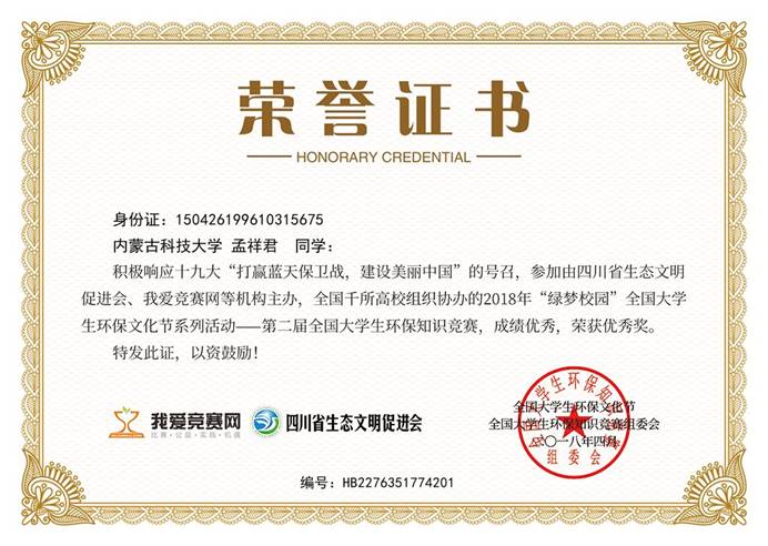 在校期间的孟祥君,曾担任db真人体育官网员工第四党支部组织委员,在职其间充分发挥党员先锋模范作用,协助支部书记认真完成支部的每一项工作;他热爱生活,努力学习,多次获得学习奖学金,并顺利通过国家英语四级考试、国家计算机等级考试二级、三级;课余时间中也不断突破自我,积极参与各类社会实践活动,荣获“全国老员工环保知识竞赛优秀奖”、"绿梦校园全国老员工环保文化节优秀工作者”、“2018年校级朗诵比赛荣获团体赛二等奖”等多项荣誉。